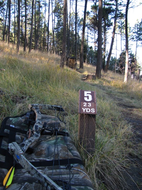 Next is number five. It’s my least favorite target. I’m not exactly sure why. You can’t see it in the picture, (I was really trying to let you see my bow in this one), but the burlap target in the middle consists of four small birds. I think I prefer to shoot at big game.
