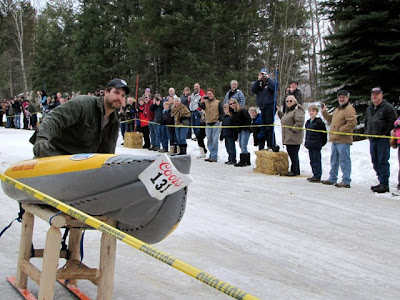 Creativity shined in the fashioning of sleds. Aside from the traditional bar stool on skis, there were boat sleds,