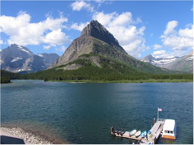 Canoes beckon visitors for a ride on Swiftcurrent Lake. |