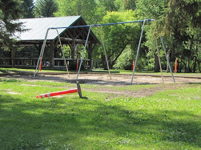 They are now building a swing set to accompany the other playground stuff. |