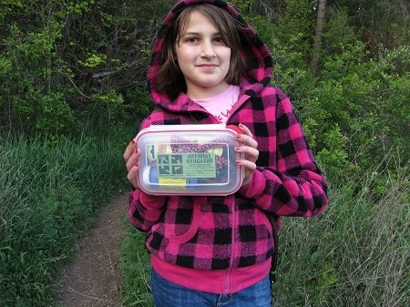 I’ve written here before about the outdoor activity of geocaching where participants hunt down treasure with their GPS. People from around the world participate in this game and in doing so have lots of fun. Geocaches are hidden everywhere imaginable and often lead the geocacher to a nifty out of the way place they wouldn’t have discovered otherwise. Ever since we started playing this game of hide and seek about a year ago, we’ve been doing the looking. E has been wanting to do the hiding for awhile and we finally got around to that a couple of weekends ago. Here’s her account of hiding the cache called “Magic Treehouse”.