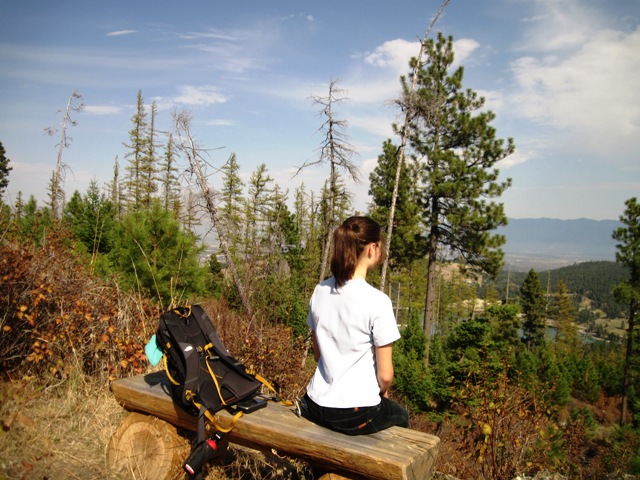 We met up with some people on horses. The man told us to get to the lower side of the trail and to talk to the horses. I thought it would look crazy to talk to the horses, so I was relieved when the man asked us where we were going and I didn’t have to think of something to say to his mule. I told him we were hiking to the Foy’s Overlook. The lady that was with him was nice and suggested we write on the Foy’s to Blacktail Project blog. They are promoting the trail and want trail user feedback. I wondered how to write on someone else’s blog.