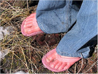 After taking a turn, the snow became unavoidable, and covered the forest floor. It was more icy, than snow. M complained. Her thongs kept falling off and her feet were really starting to hurt. E was afraid M would get frostbite.
