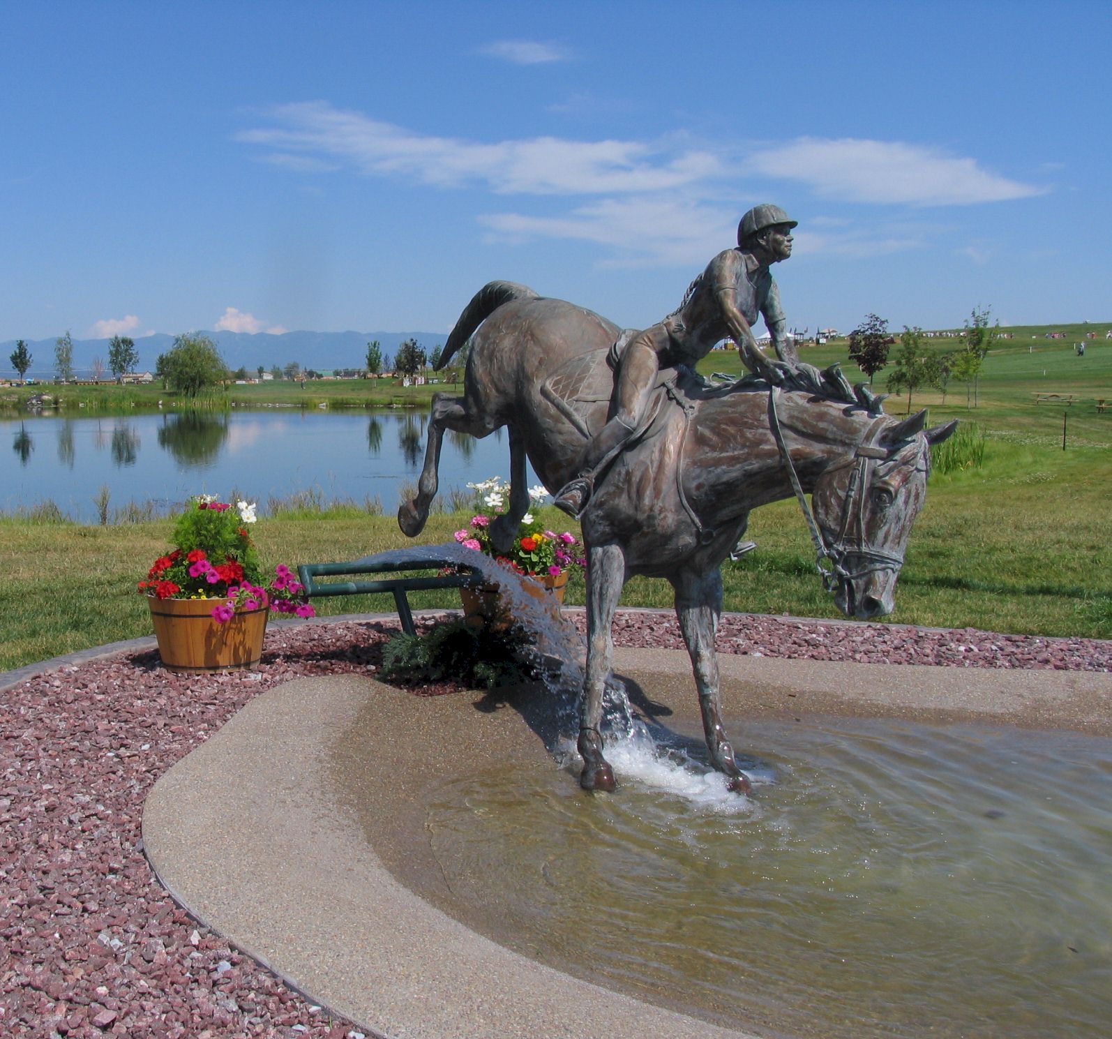 They were also pretty. Jumps were painted and showy flowers added a splash of color. I have since learned that blue food color was added to enhance the water’s color on the water obstacles.