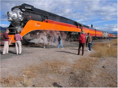 The famed Southern Pacific 4449 steam locomotive rolled into the Flathead last Saturday. Westbound along the Amtrak Empire Builder route from Minneapolis to Portland, it had a lay over in Whitefish. Parked just east of the train station, the public was invited to take a look. You didn’t have to be a train buff to appreciate the magnificence of the SP4449. I think there must be little bit of engineer in all of us as kids of all ages stood in line to climb aboard and dream of riding the rails.