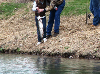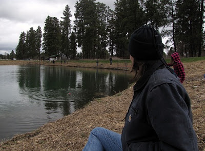 Day 1. With new tackle, new fishing licenses, and a container of night-crawlers in hand we were off to catch dinner. The new Pine Grove Fishing Pond was in a lovely setting and very impressive. But the skies were cloudy and it was darn cold for April 30th.